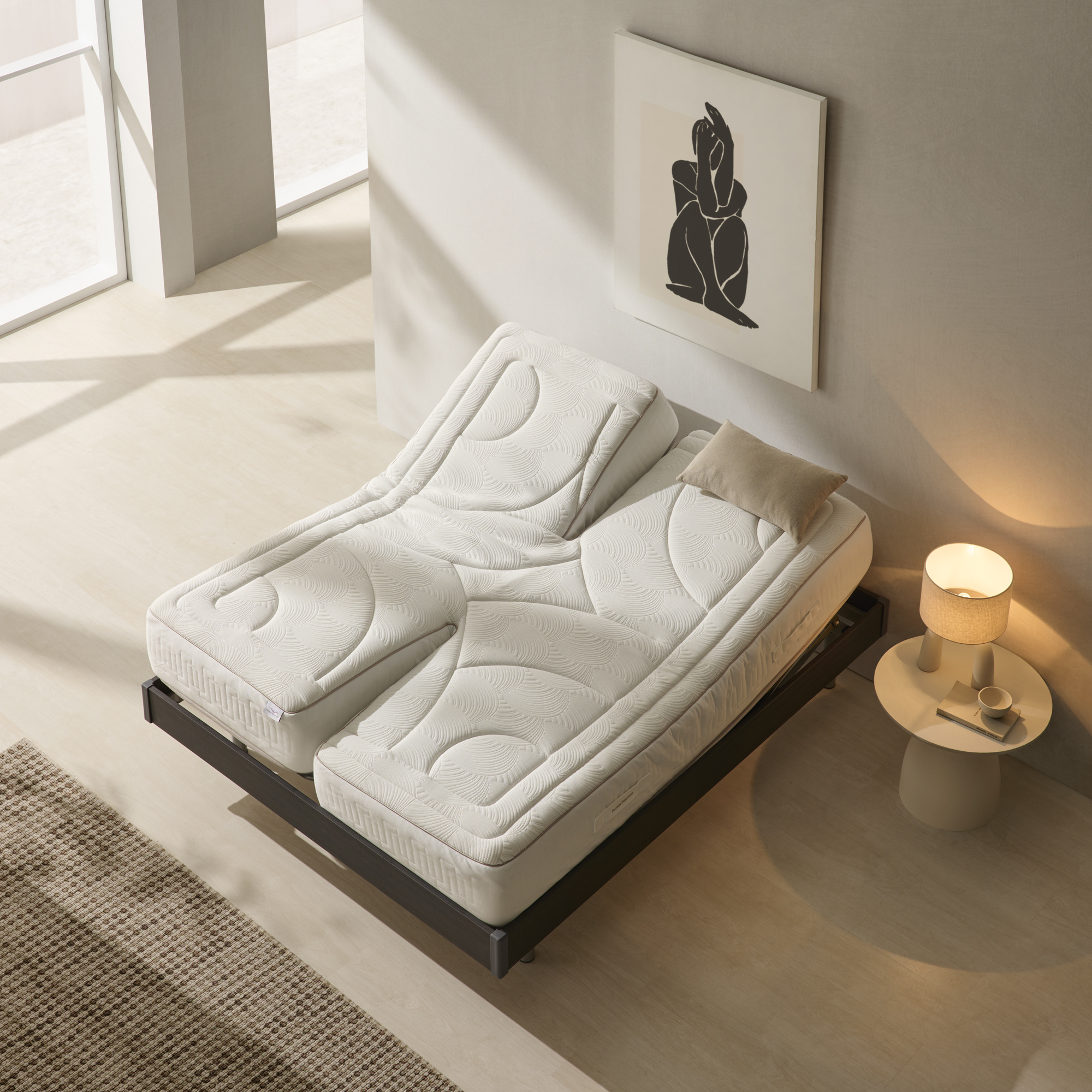 - Estos modelos están unidos por la parte central, lo que aporta más sujeción a la hora de la movilidad de las camas articuladas.