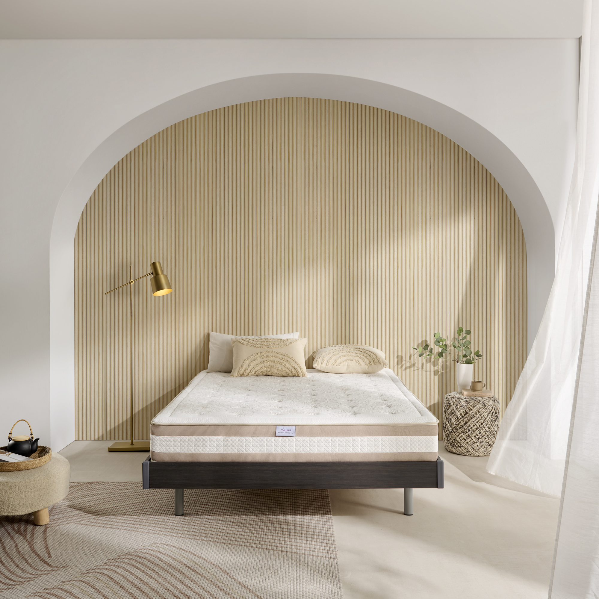 - Composed of a core of 6 cm, viscoelastic of 50 kg density, sensitive to temperature and pressure, plus 14 cm. HR D30 to obtain the necessary firmness.